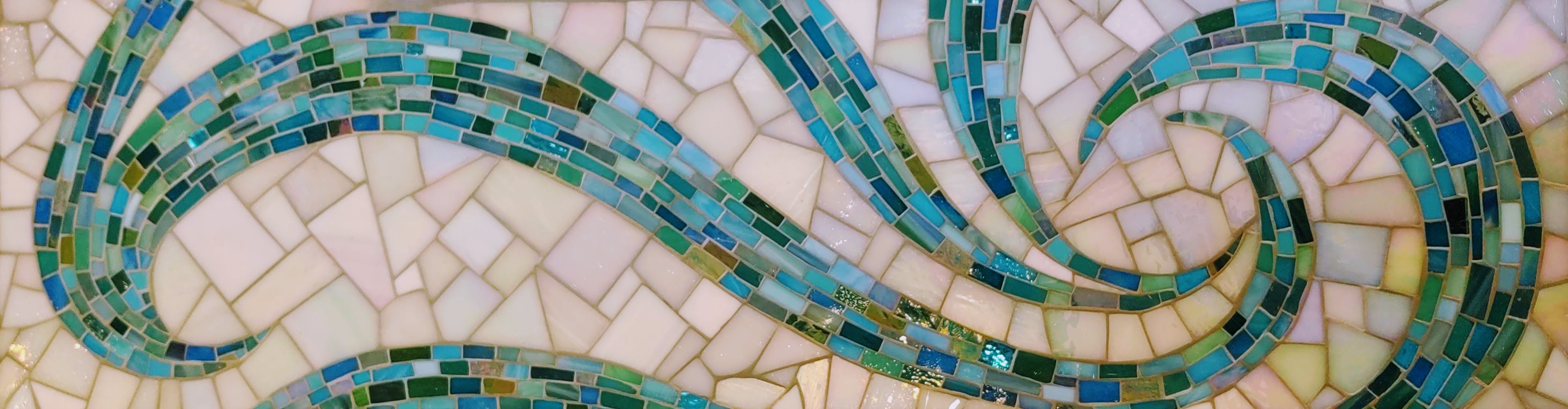 | Stained glass mosaic mural for private home inspired by kelp and octopus imagery. |